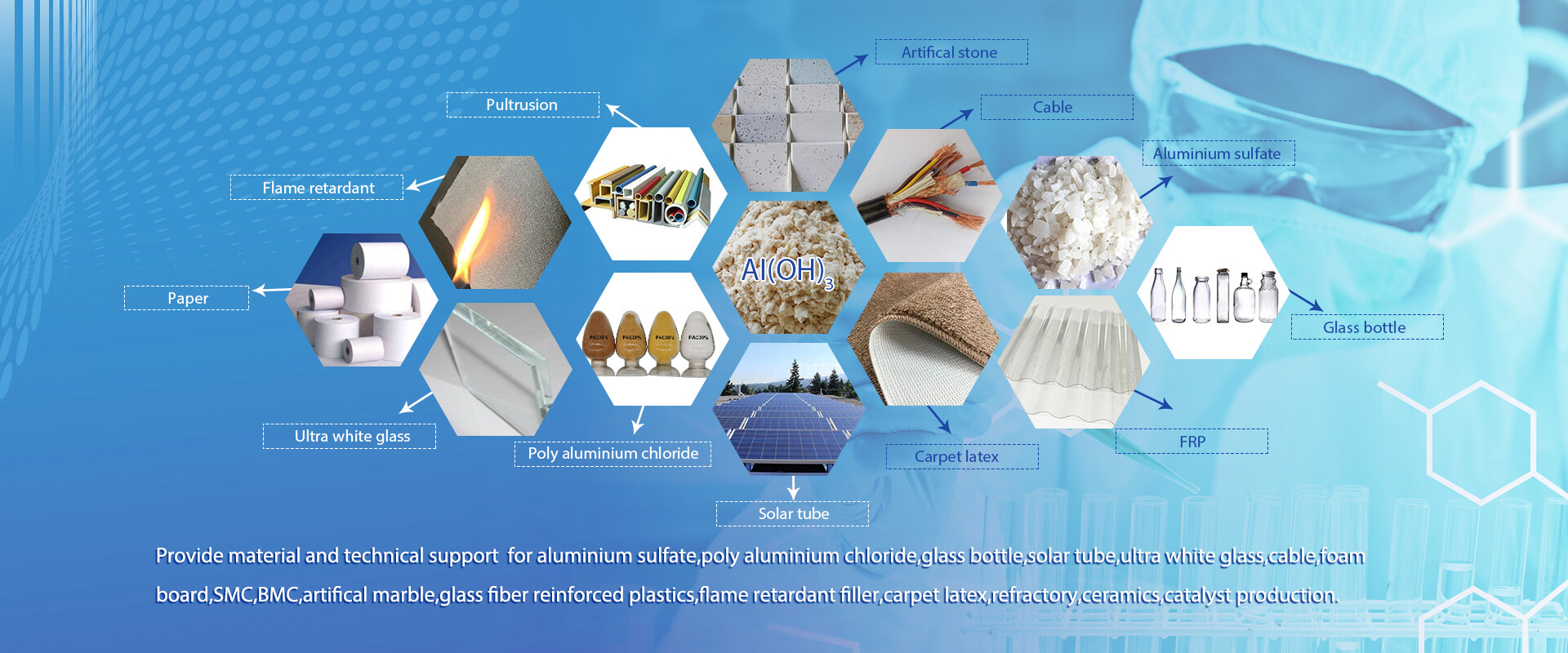 artifical marble,glass fiber reinforced plastics,flame retardant filler,carpet latex,refractory,ceramics,catalyst production.
